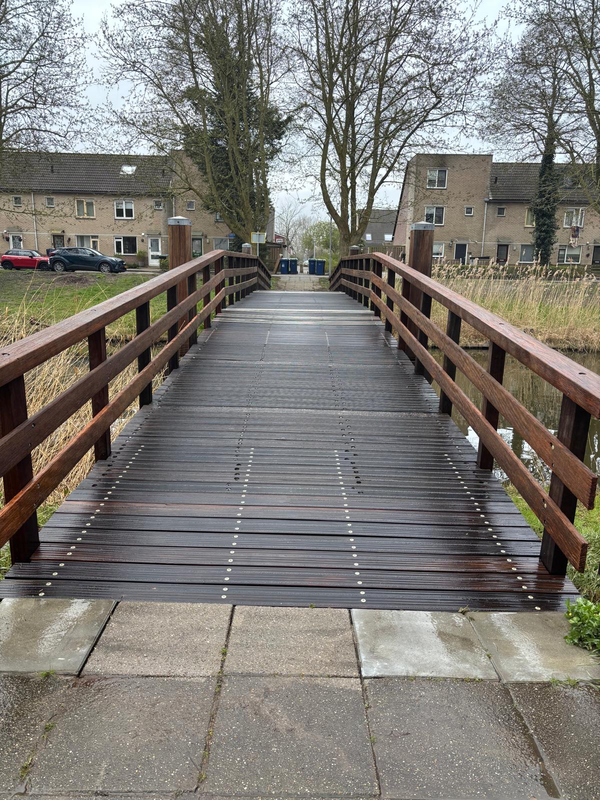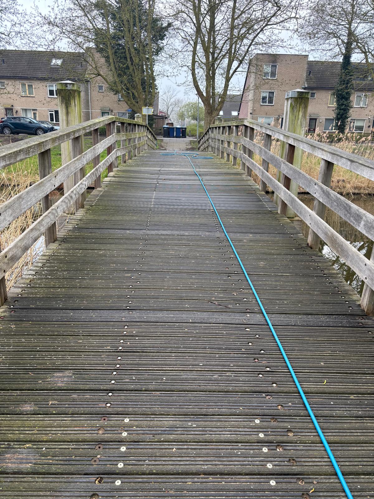 Met inzet van de Meclean Steamplus is met stoom hier duurzaam de houten brug onder handen genomen door onze specialistische reinigingsmedewerkers.