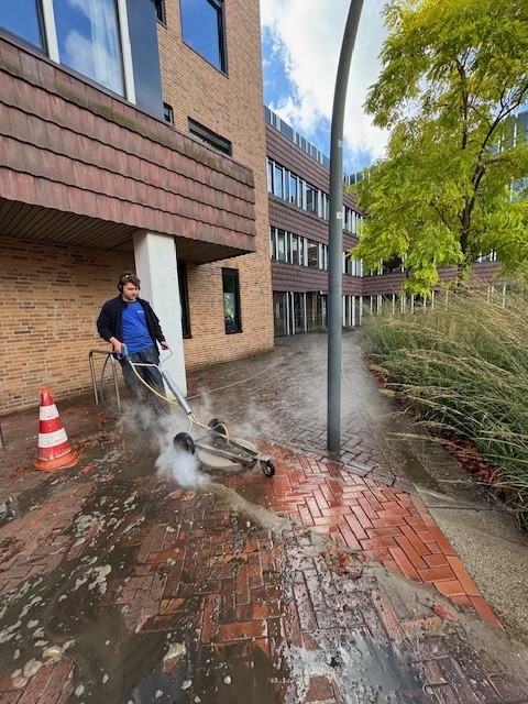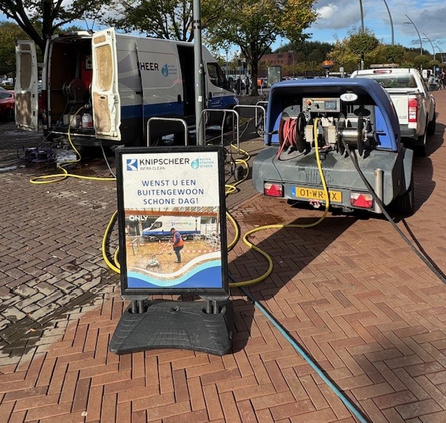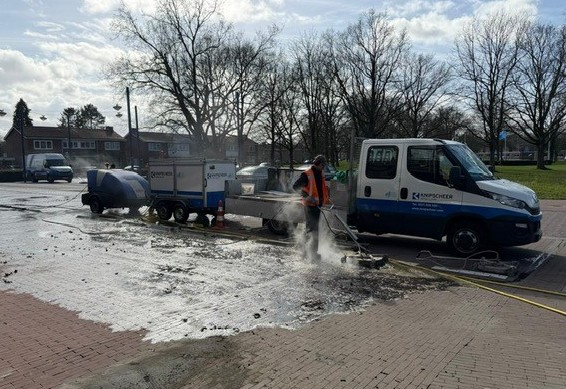 In opdracht van de gemeente Dronten hebben onze specialistische reinigingsmedewerkers in maart de bestrating van voornamelijk gebakken straatbakstenen duurzaam met stoom en inzet van de bodemwagen en heetwater hogedrukunits gereinigd. Afgelopen oktober hadden we al planmatig delen van winkelcentrum Suydersee gereinigd. Dit alles is uitgevoerd met inachtneming dat de werkzaamheden zo min mogelijk overlast veroorzaken voor de winkeliers en het winkelend publiek.